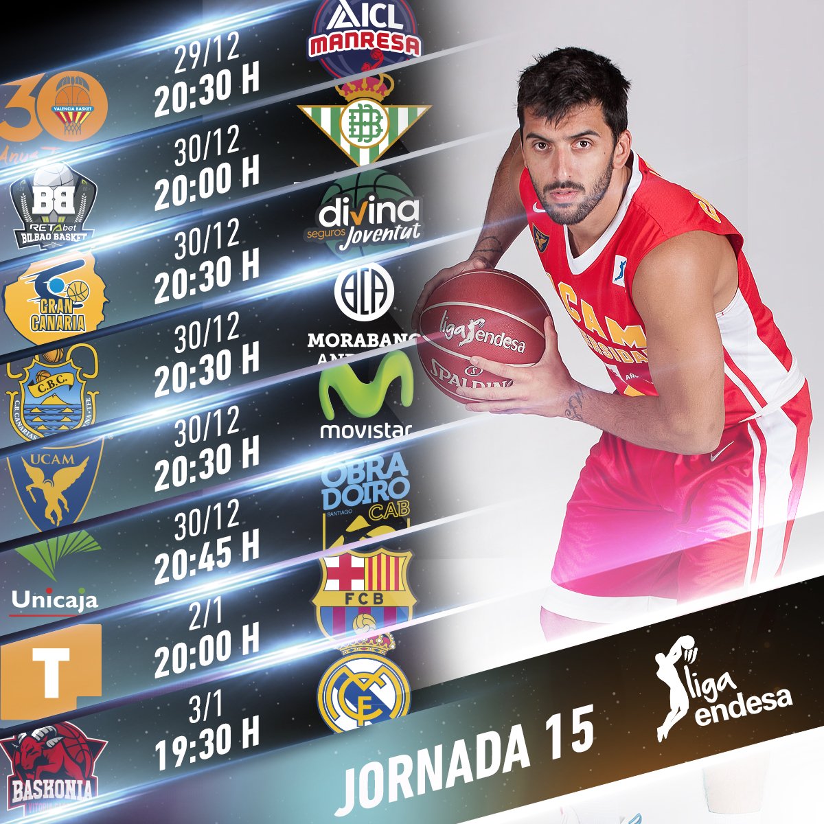 El plato fuerte de la jornada queda para el martes 3, a las 19.30. Ambos han perdido su ultimo partido en liga, y antes de este espectacular duelo tendrán que jugar Euroliga. En un partido que seguro será emocionante, el Baskonia necesita ganar para no complicar su participación en la competición copera, mientras que los de Laso, que tan solo están una victoria por delante del Barcelona, deberá recuperar sensaciones en la competición domestica.