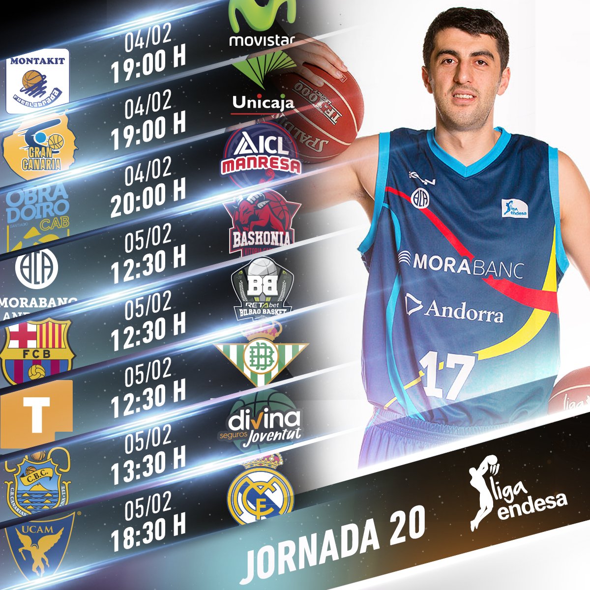 Gran encuentro en Andorra entre dos equipos de playoff. Sin embargo, Andorra no debe relajarse para confirmar su buena posición al final de la liga. Baskonia está en un gran momento de forma. El equipo local tiene la baja de Nacho Martín. En el conjunto vasco, Shengelia es baja y Budinger jugará en el puesto de Blazic.