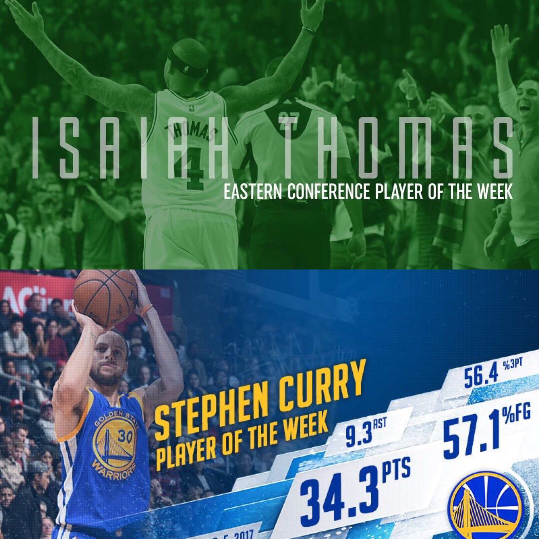 Dos bases han sido elegidos por segunda ocasión para ambos en esta temporada regular NBA 2016/2017 como mejores jugadores de la semana: Isaiah Thomas para la conferencia Este y Stephen Curry para el Oeste. Además, estos dos jugadores fueron nombrados como los mejores del mes de enero junto a Kevin Durant.