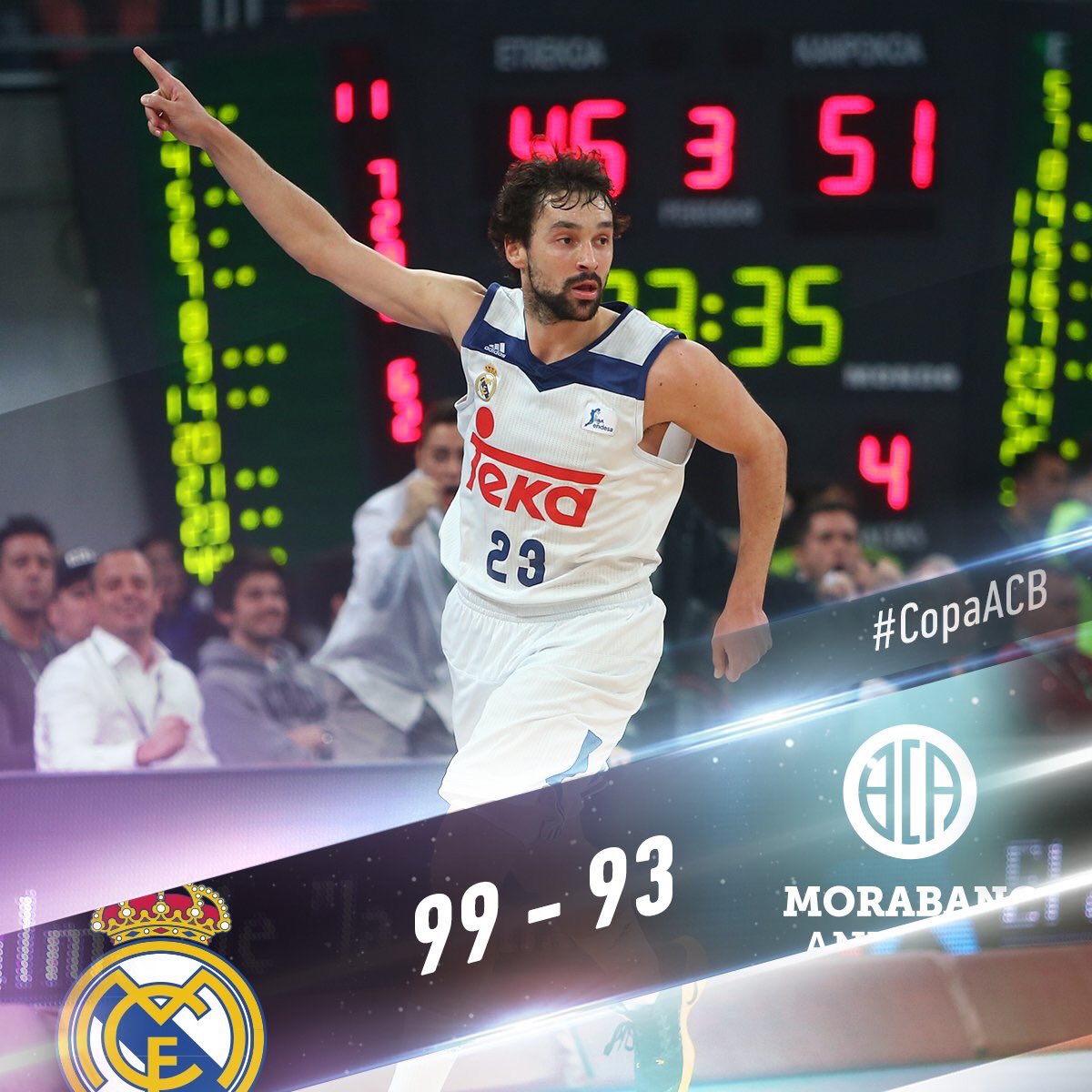 El comienzo del partido estuvo dirigido por un nombre: Shermadini (27 puntos, 7 rebotes). El pívot andorrano dominaba en la pintura y permitía a su equipo empezar a tener ventajas considerables, que llegaron incluso hasta los 16 puntos. El pívot georgiano estuvo bien acompañado por Albicy, Navarro o Antetokounmpo en la primera parte del choque, a cuyo final se llegó con ventaja de 10 puntos para el Morabanc (33-43), destacando únicamente Randolph (25 puntos, 27 de valoración) en los madridistas.