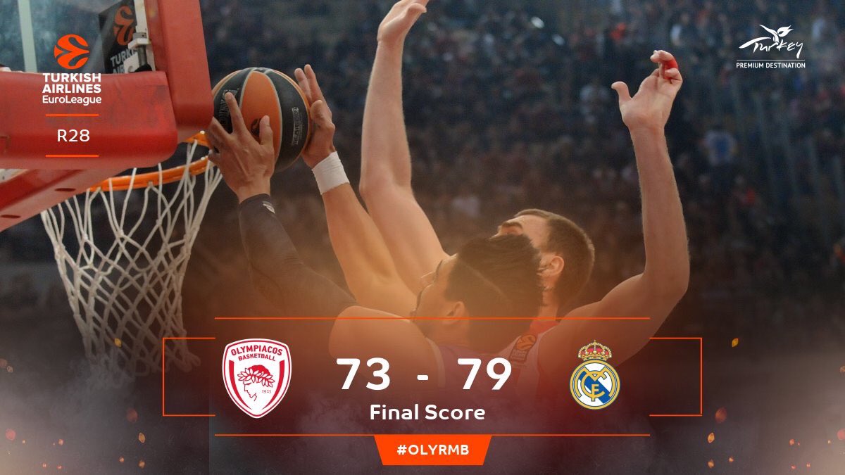 El Madrid aguantaba la ventaja en el marcador, pero con el paso de los minutos apareció el mejor Spanoulis para acercar a su equipo a cuatro puntos a falta de dos minutos para finalizar el partido. Thompkins, no desde el ataque, sino con su defensa, y con el acierto desde la línea de tiros libres, certificaron una valiosa victoria de los de Laso por 73-79.