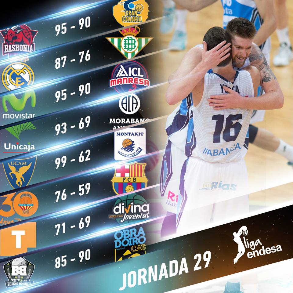 El conjunto blanco vence a medio gas contra un equipo que se jugaba el descenso. El Real Madrid logró una buena renta en la primera parte que conservó hasta el final. Carroll con 25 puntos y Nocioni con 26 fueron los máximos anotadores del choque. En el Betis, Milosevic con 19 puntos y Alfonso Sánchez con 11 llevaron la batuta anotadora.