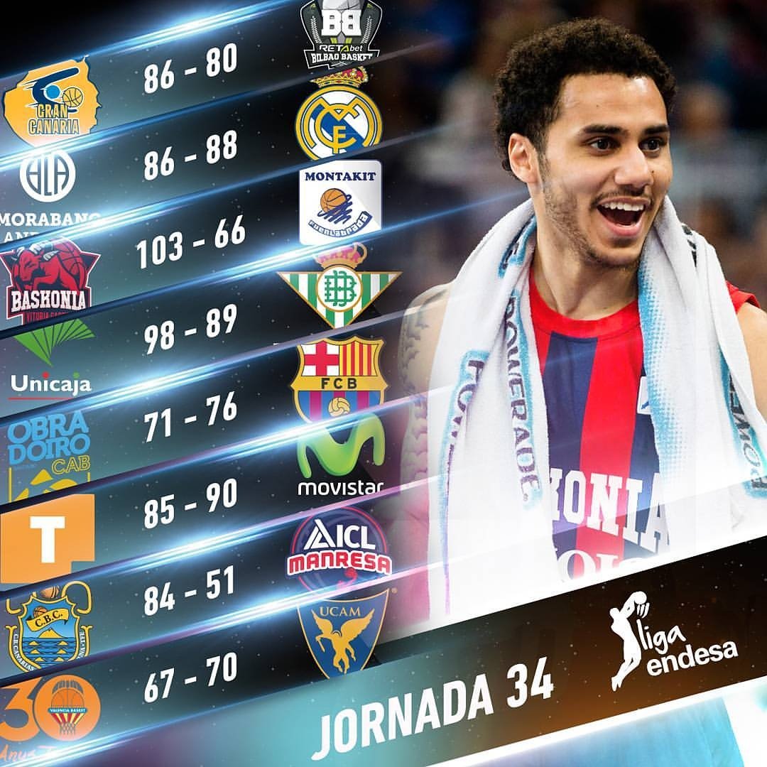 Se tenía que dar una carambola de resultados para que Baskonia fuera segundo y ayer se dieron. Su victoria contundente ante Fuenlabrada (tenía que ganar de más de 28) y la sorprendente derrota de Valencia en casa ante el UCAM Murcia hacen que los de Sito Alonso queden subcampeones de la liga regular y, por tanto, se enfrenten al Herbalife en play-off.
