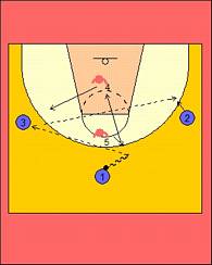 A partir de este pase se activa el ejercicio: los atacantes corren para anotar a toda cancha mientras los defensores deben detenerlos pero cuentan con una desventaja momentánea ya que el jugador defensor situado enfrente del receptor del balón debe pisar línea de fondo y recuperar esprintando para tener opciones de llegar a una situación de 3 contra 3.
