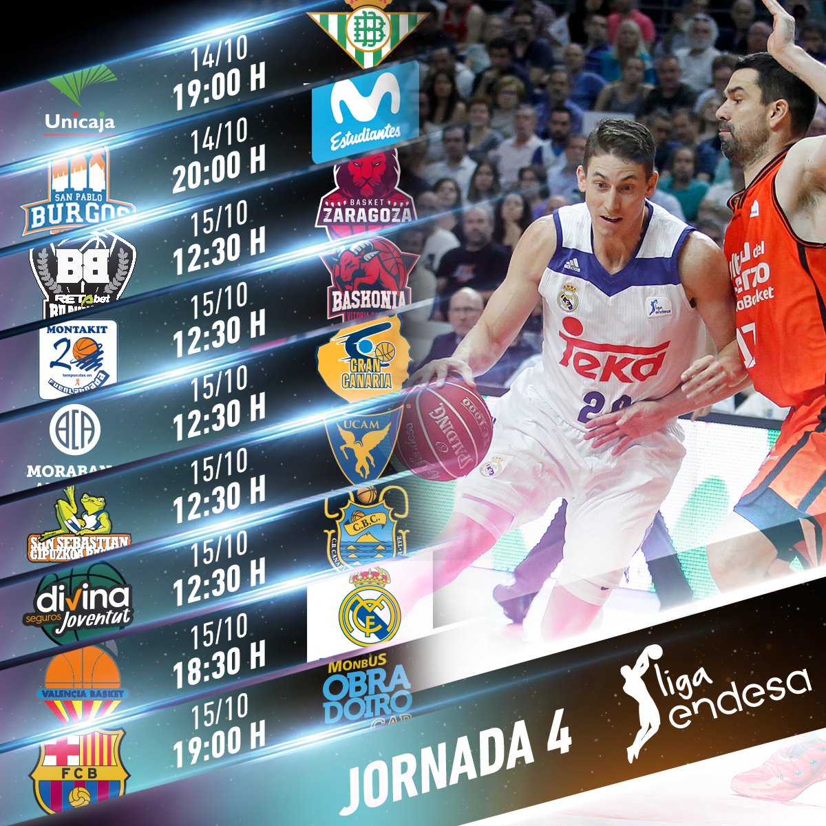 Se vuelve a disputar el duelo de la final de la temporada pasada entre el campeón, Valencia Basket y el Real Madrid. Ambos equipos han empezado bien la temporada en Liga Endesa con tres victorias por ninguna derrota, aunque vienen de resultados diferentes en Euroliga.