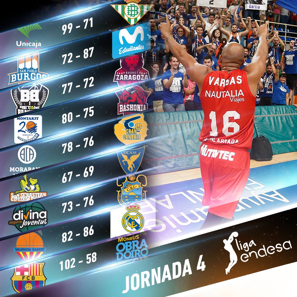 Continúa la Liga Endesa tras la semana de competiciones europeas. Así queda la clasificación tras la cuarto jornada.
