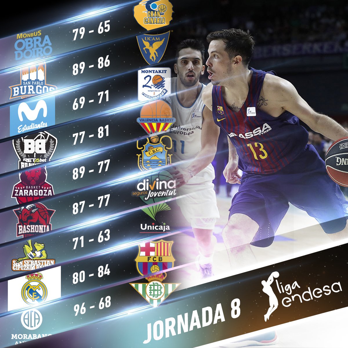 Una de las sorpresas de la jornada fue la victoria de GBC ante Unicaja, en un partido marcado por el buen hacer de los locales en labores defensivas. Fue un partido muy igualado que se decantó en los minutos finales debido al mayor acierto de los locales en los tiros finales. En lo minutos finales Unicaja tuvo posibilidades de llevarse la victoria pero los tiros de Suaréz, Salin o Nedovic no entraban y los locales iban a poder sumar una nueva victoria después de una mala racha. Se quedan en mitad de la tabla con tres victorias mientras que Unicaja se queda en 7 posición con 4 victorias y otras tantas derrotas.