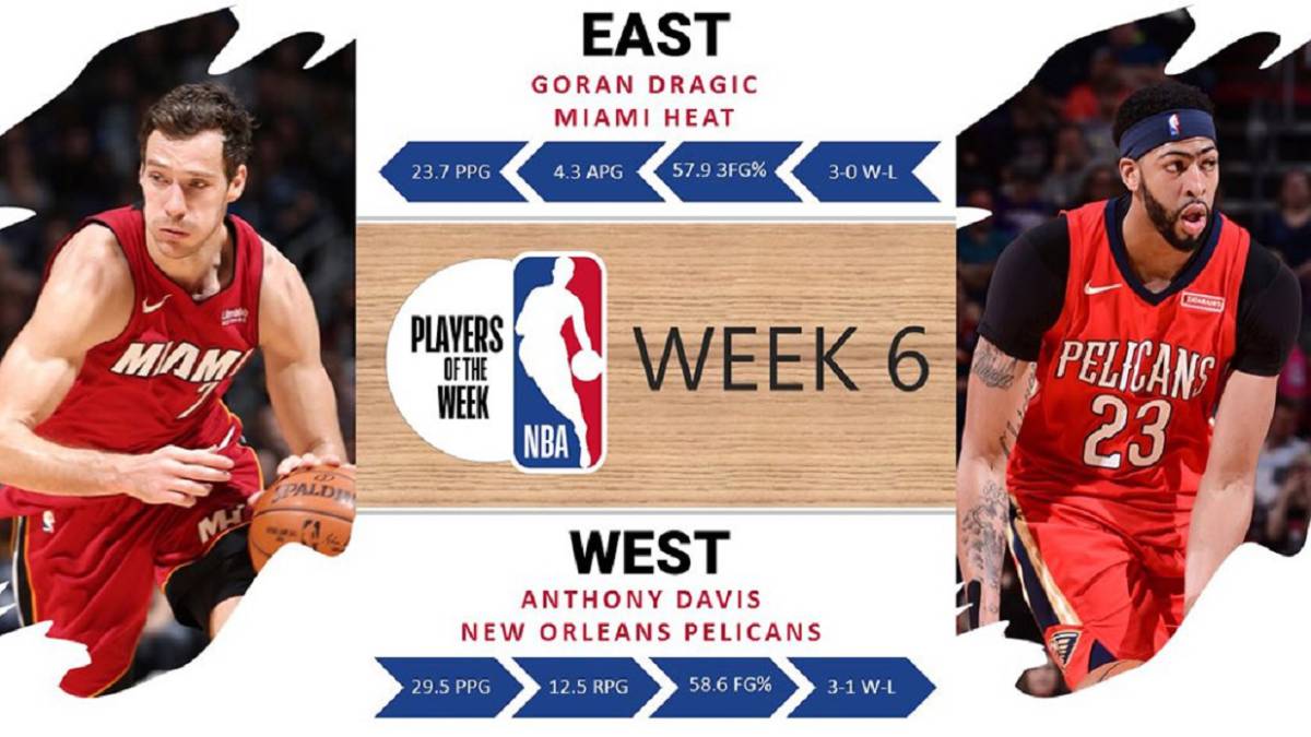 En la sexta semana de esta NBA 2017/2018, dos nuevos jugadores han sido reconocidos como los «Mejores de la Semana» del 20 al 26 de noviembre. Anthony Davis en la Conferencia Oeste y Goran Dragic en el Este son los nombres mencionados.