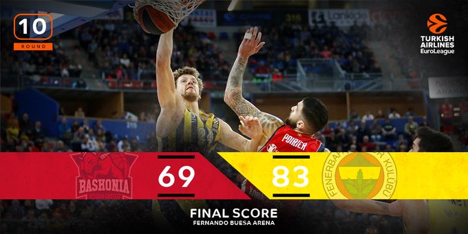 Con esta victoria Fenerbache sigue “ a la caza” de Olympiacos y CSKA con 7 victorias y 3 derrotas mientras Baskonia se complica un poco con 4 victorias y 6 derrotas.