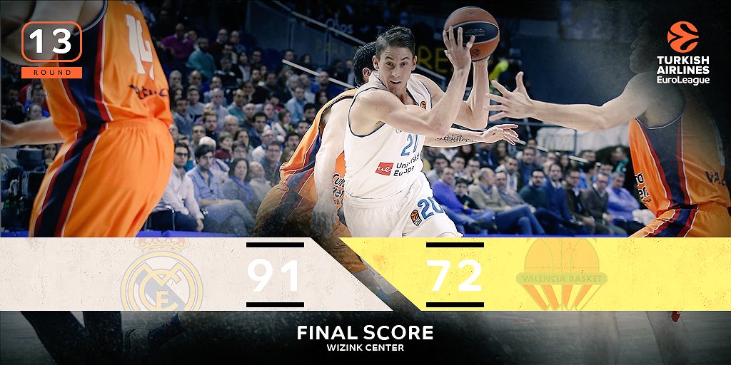 Victoria por 91-72 ante un Valencia Basket hundido, novena derrota consecutiva en Euroliga. Los blancos tuvieron que reponerse a la expulsión de Doncic con un enorme trabajo coral.