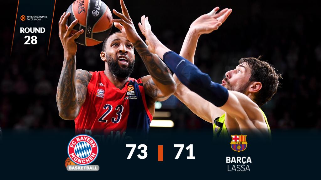 Un Barça Lassa muy desacertado en el tiro exterior 9/30 naufraga en Munich y se olvida de la cuarta plaza. Los alemanes se colocan a una victoria del top 8 a la espera de Olympiacos y Milán.