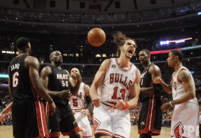 Aunque los de Thibodeau salieron con todo en esta serie, llevándose el primer encuentro por un abultado 82-103. Parcial de 65-34 en la segunda mitad a pesar de los 30 puntos de Bosh, que contrarrestaron con las actuaciones de Deng (21) y Rose (28). Tremenda capacidad reboteadora en el ataque de las torres de Chicago, con 19 rebotes capturados.