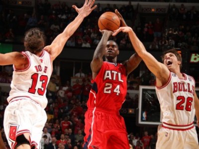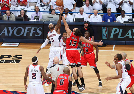 La defensa de los Bulls dejaron a los Hawks en 73 puntos en el segundo juego, lo que les sirvió para vencer por 86-73: 44 rebotes defensivos, 5 tapones y 6 robos de balón.Y en el tercer encuentro tomaron la delantera en Atlanta, tumbando por 99-82 a los locales con un infalible Derrick Rose que se fue hasta su máxima puntuación, 44 puntos.