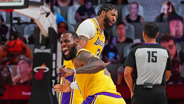 El último cuarto se abría con un 75-70 en el marcador, pero dos aciertos de tres de Tyler Herro (21+7) y Duncan Robinson (17) acercaron a los Heat. Jimmy Butler (22+10+9), que en este encuentro solo pudo desenvolverse a gusto en ciertos momentos, empató con una entrada a canasta a 83 puntos. Sin embargo, LeBron James respondió con 7 tantos seguidos (90-85), tomando en estos instantes mucha relevancia los rebotes ofensivos que capturaba su equipo para seguir generando en segundas oportunidades.
