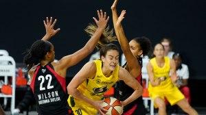 La MVP A’ja Wilson (18+6+4) salió con ganas de alargar la eliminatoria, anotando 8 puntos de un parcial inicial de 13-4 favorable para Las Vegas. Sin embargo, Stewart (26 puntos con un tremendo 10/14 en tiros y 3/4 en triples) replicó a su rival, con otros 11 tantos que hicieron recuperar el aliento de las Storm en estos primeros compases del partido. Y Seattle se puso arriba tras el primer cuarto, 21-23. Wilson había aportado 14 puntos en estos diez minutos.