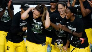 Aunque no estuvieron nada bien en el triple (26’9%), la veterana Sue Bird (5+7 asistencias), Stewart y Loyd anotaron de tres dentro de una racha de 15-4, que hizo aumentar la sangría dejando el marcador en 38-58. No detuvieron su ritmo mientras que las jugadoras de Bill Laimbeer fueron decayendo poco a poco en su porcentaje de tiros de campo (34%), y afrontaron el último cuarto con un 48-75. Por cierto, para Bird también es su cuarto anillo, pues ha participado en todos los éxitos de la franquicia de Seattle.