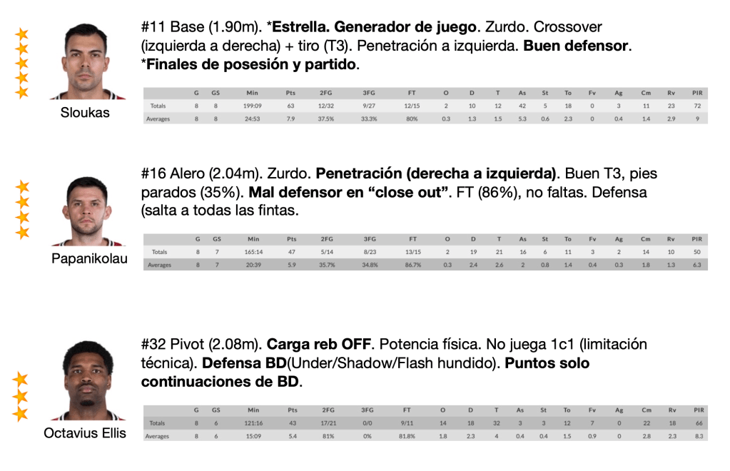 *5 Inicial: juego mucho más rápido: Sloukas, Papanikolau, Mckissic, Ellis (+ ala pivot)