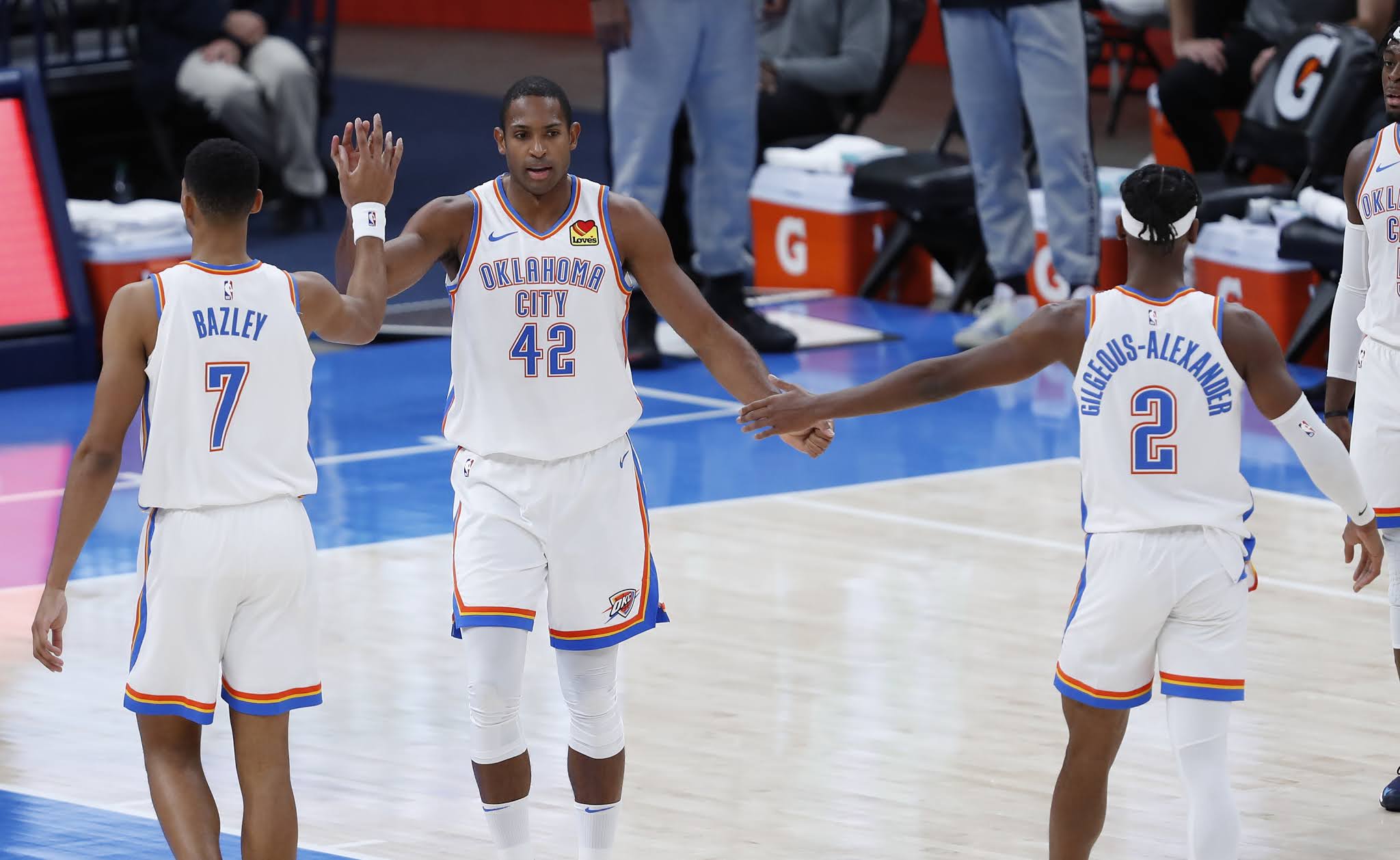 A un increíble Shai Gilgeous-Alexander le tocará tirar del carro mientras los Thunder intenten llenarse de nuevas promesas en los próximas temporadas. En su segundo año promedió 19 puntos (16’3 en postseason), 5’9 rebotes y 3’3 asistencias. Lo secundará Hamidou Diallo, otro jugador de tercer año que duplicó su actuación en el último curso (6’9+3’6), y Luguentz Dort, sophomore que ganó protagonismo en la burbuja, siendo un buen defensor.