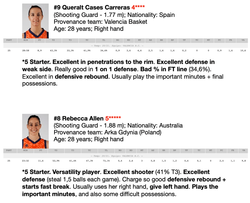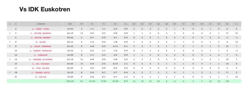 -1st team in steal balls (9.6 game). 1st team in Blocks (2.3 game). 2nd team in assists (15.7 game). 3rd team in score more points (74.6 game).