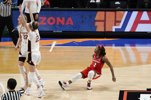 Las pérdidas de balón era el gran lastre de las Cardinal y tuvieron hasta diez pérdidas en la primera mitad (terminaron con 21). Aún así, el desacierto de sus rivales les hacía liderar el marcador, y un parcial de 11 puntos, con un 3+1 incluido de Lexie Hull (10+10+2), puso a Stanford en diez unidades de diferencia, aunque llegaron al descanso con 24-31. La estrella de Arizona, Aari McDonald, solo pudo sumar 5 puntos atinando únicamente dos tiros de los once que intentó, y un triple de tres lanzamientos. Además, su equipo se fue con un 28% en tiros de campo y un 27% de tres, mientras que las Cardinal gozaban de la mitad de acierto en triples y casi el 45% en lanzamientos.