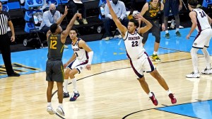 Desde entonces, los Bears no se bajaron de los quince puntos de diferencia y el reloj ya corría en contra de unos muy desconcentrados Bulldogs. Corey Kispert solo pudo llegar a los 12 tantos y Jalen Suggs fue el único que pudo aportar en todo el encuentro, yéndose a los 22 puntos, 3 asistencias y 2 robos. Por parte del equipo de Scott Drew, el jugador Davion Mitchell, recién proclamado Naismith Defensive Player of the Year, estuvo ejemplar defendiendo sobre todo a Suggs y consiguiendo 15 puntos, 6 rebotes y 5 asistencias.