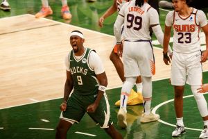 El último periodo fue meramente transitorio para la primera victoria de los de Mike Budenholzer en estas Finales. El pívot bahameño Ayton se cargó de faltas demasiado pronto, y Devin Booker no fue nada determinante y solo sumó 10 tantos, con un triste acierto de tres tiros en 14 lanzamientos. Chris Paul acumuló 19 puntos y 9 asistencias, dejándonos una noche más jugadas y canastas preciosas, pero esta vez no se vio rodeado de sus compañeros para hacer frente a Antetokounmpo y compañía.