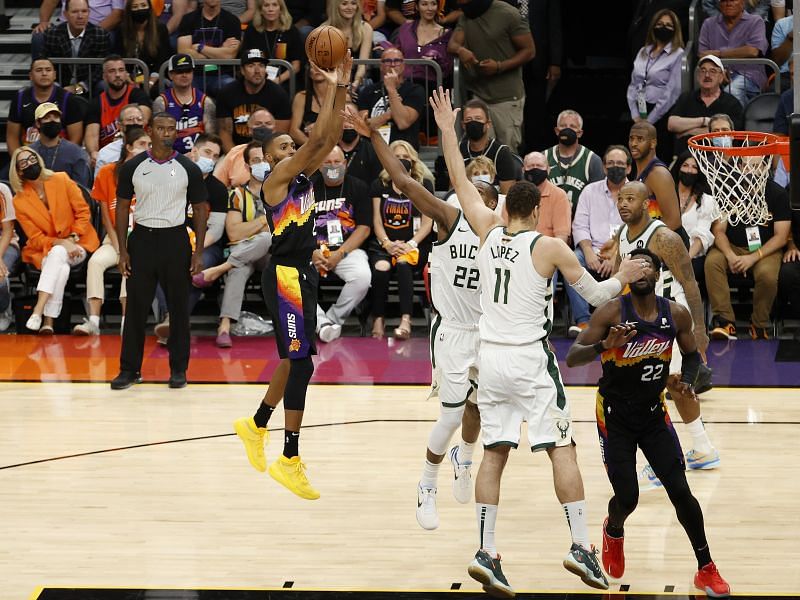 El partido tuvo la noche y el día en la primera parte. Los Suns habían echado por tierra la gran ventaja que habían conseguido, tanto que finalmente un triple de Bobby Portis adelantaría a los Bucks (50-49). El acierto de Suns había menguado considerablemente este cuarto y, al final, Milwaukee al descanso se fue ganando por 64-61.